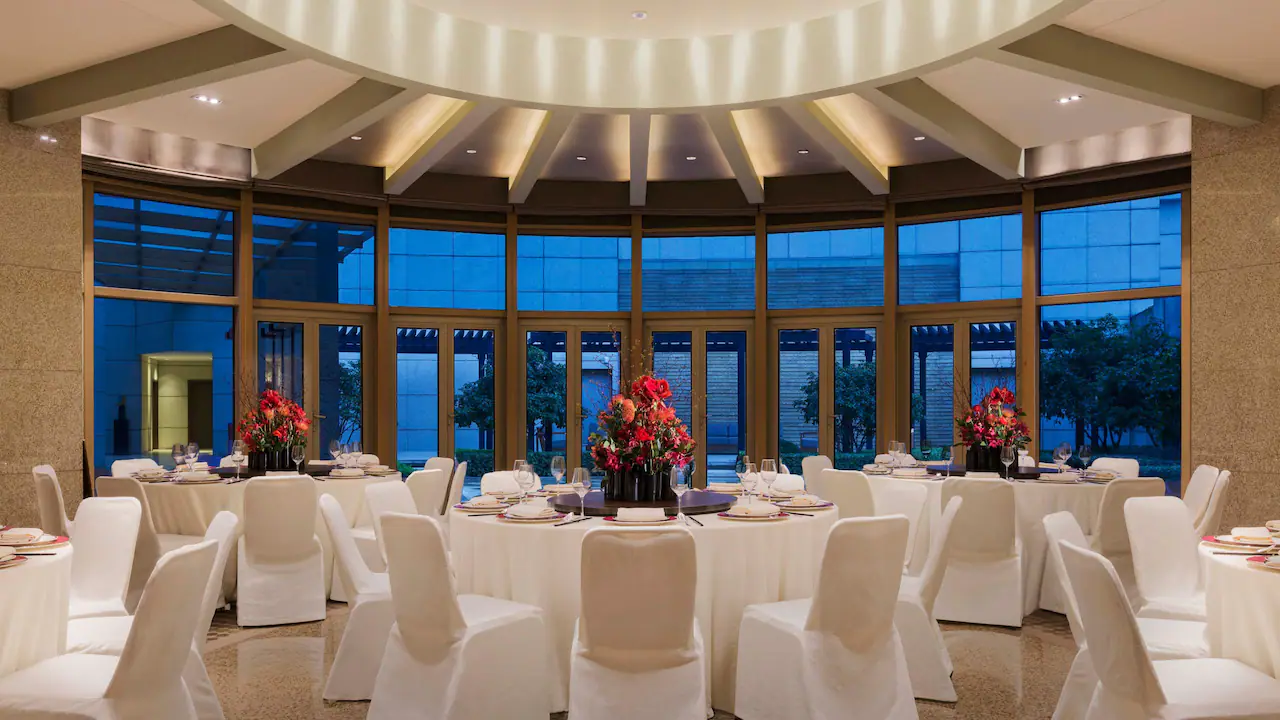 上海外滩茂悦大酒店拥有占地3,466平方米(37,308平方尺)的会议宴会设施,可承接多达1,674人左右的会议及社交活动。